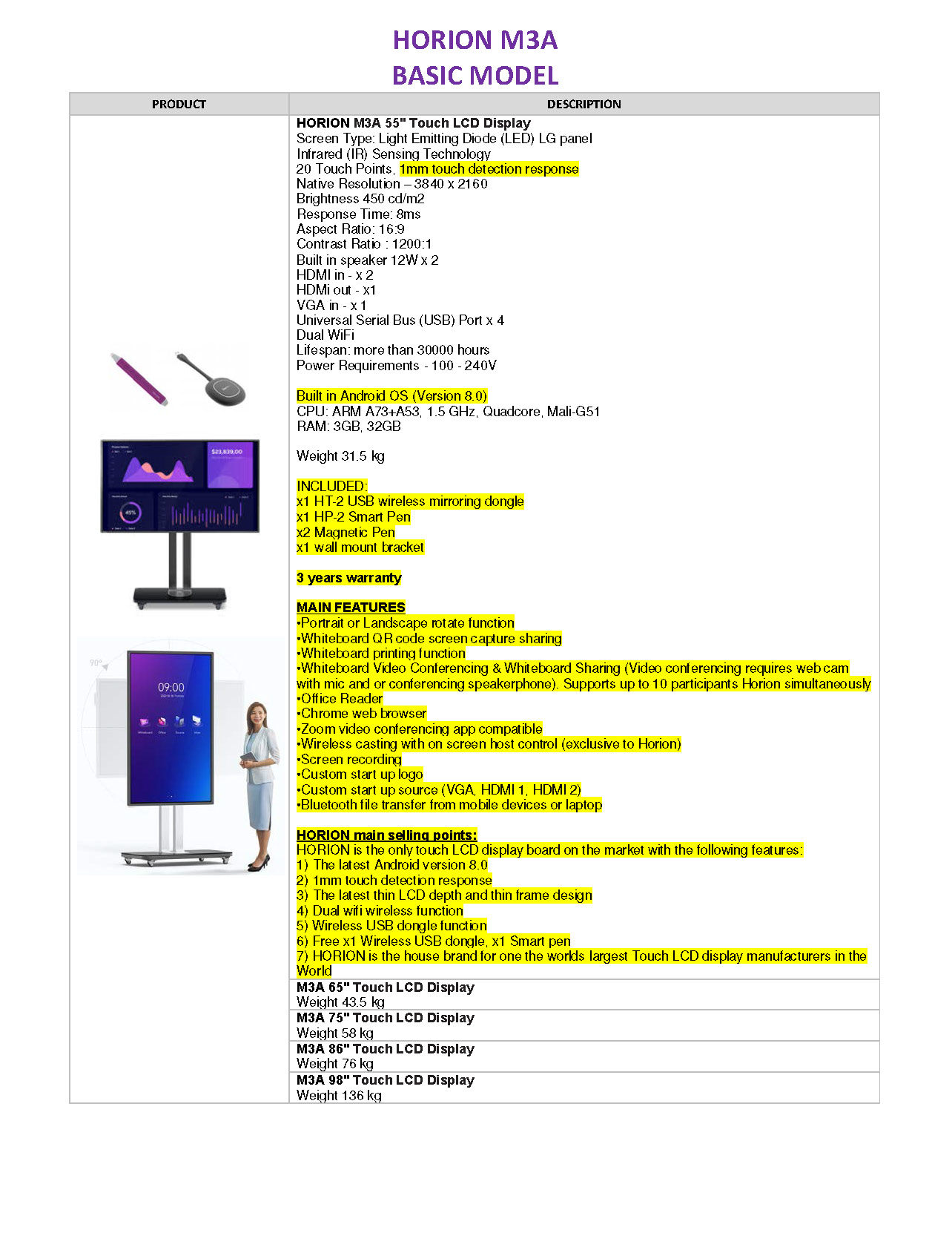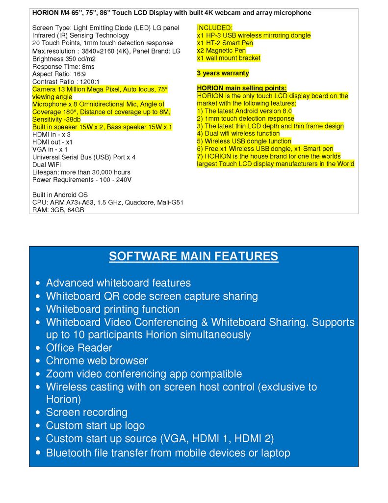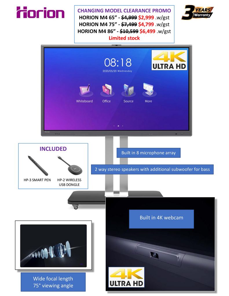 HORION M4 Interactive Flat Panel with built in webcam and microphone array Clearance Promo (Limited Stock)