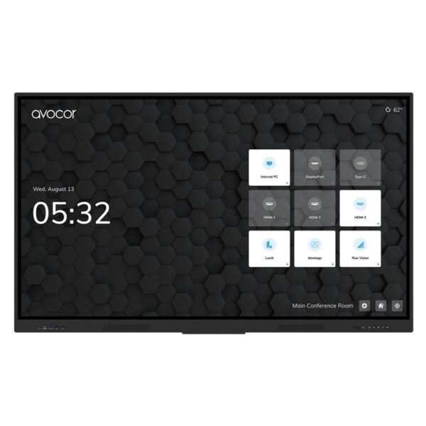 Powered by Android 13 and an Amlogic processor with 4GB RAM and 32GB storage, the AVE-6550 supports built-in collaboration tools including Lucidspark whiteboarding, DisplayNote Montage wireless screen sharing, and Rise Vision digital signage management. Avocor’s UiQ touch interface provides simple navigation and quick access to essential collaboration features.