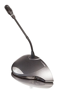 Similar in appearance to the Delegate Unit, the Chairman Unit CCS-CMS also includes a ‘chairman priority” button. When pressed, the prioriry button causes all currently active delegate microphone to be temporarily or permanently muted, allowing the chairman to take control of the meeting. An optional chime can be selected to precede chaiman priority calls.