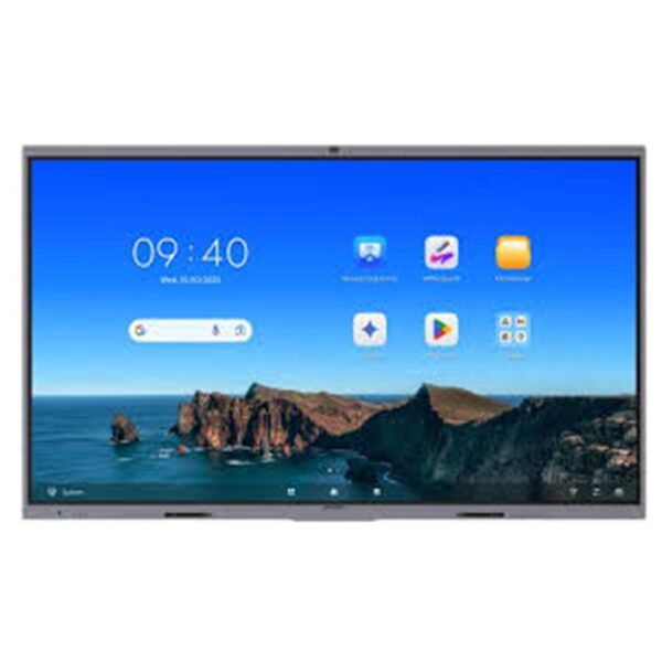 Powered by Android 14 and EDLA certified, the display delivers enterprise-ready performance and enhanced security. With 8 GB RAM and 128 GB storage, it provides smooth performance for applications, digital whiteboards, and collaboration tools. An optional OPS module allows the display to run Windows alongside Android, enabling compatibility with conferencing platforms and productivity software.